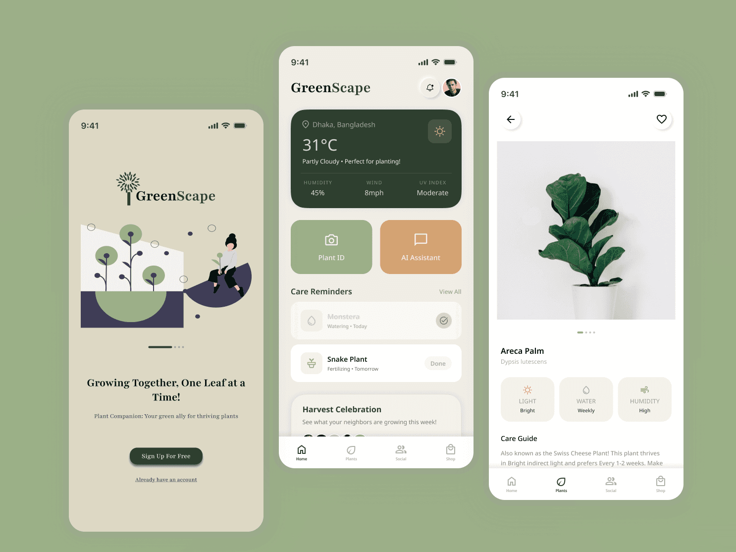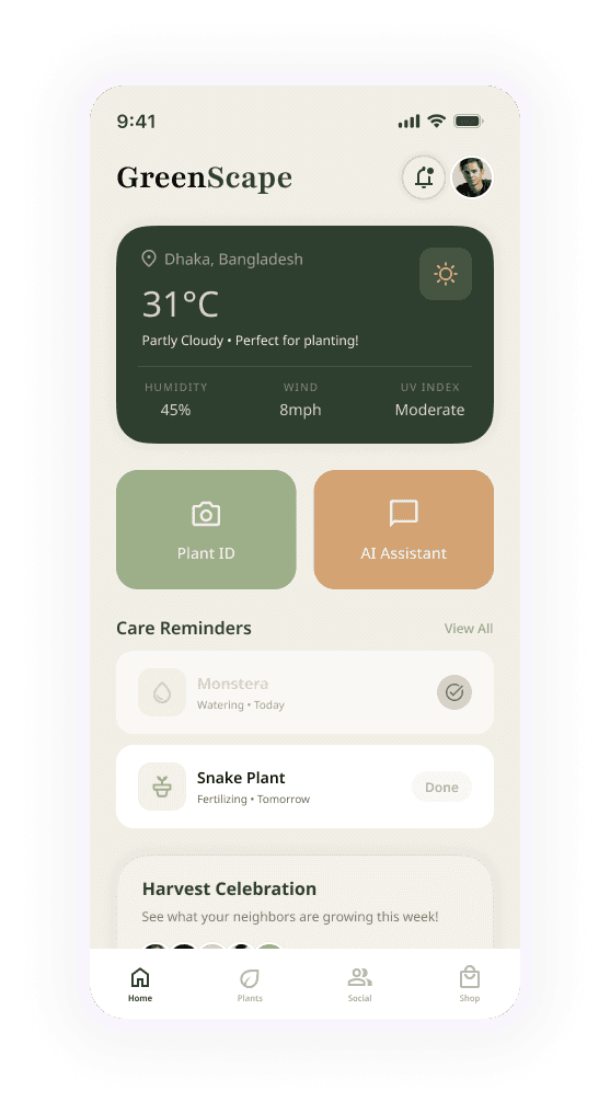 Most plant apps look nice but are actually overwhelming. They throw too much information at you and forget that most people just want simple help keeping their plants alive. I wanted to build something different—an app that feels like a friend, not a textbook.