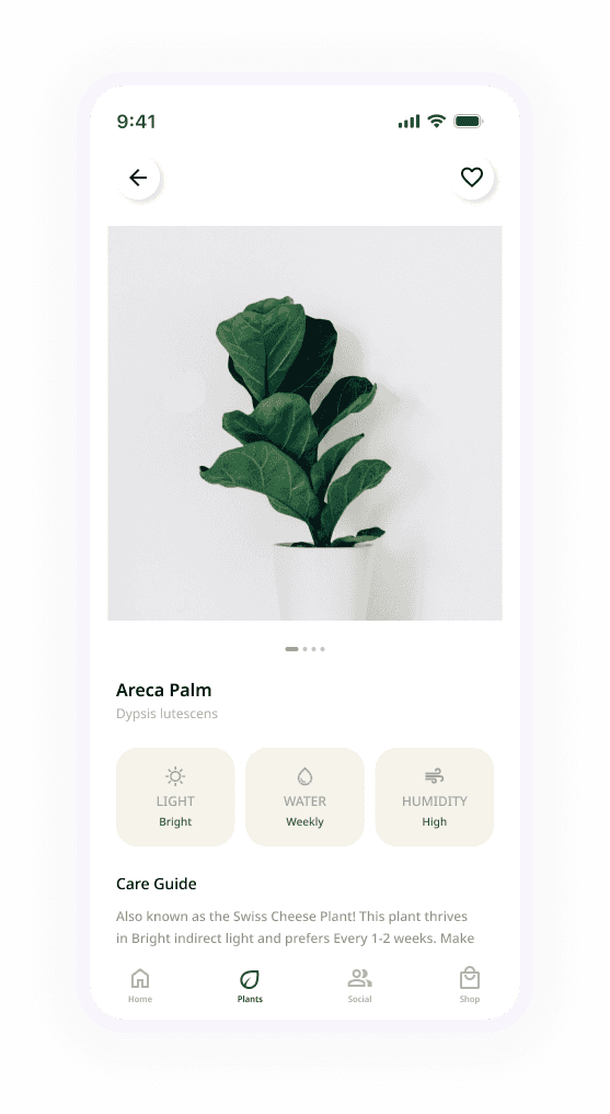 A personal dashboard to save all plants with photos and names. Everything organized in one place.